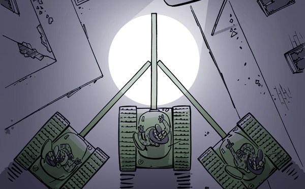 Latvian cartoonist Gatis Šļūka’s “Joke About Peace,” 14 August 2014.