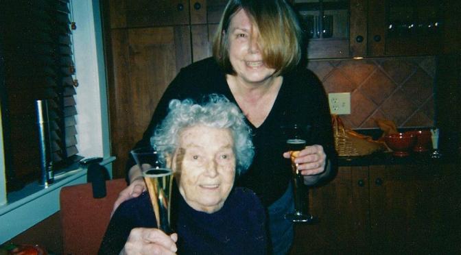 My mother and me, drinking champagne at her 90th birthday party in Ellicott City, MD (Photo: David Cash)